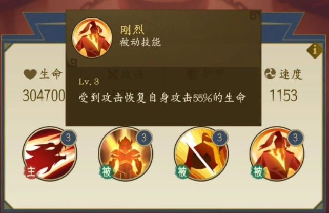 遭受攻击时,能恢复自身攻击力55%的生命值。无论是技能攻击、普通平A,还是流血、燃烧效果,甚至神兽技能的攻击,都能触发回血机制。这里要强调的是,回血量是自身攻击力的55%,而非所受伤害的55%!!!!在游戏里,关羽、帝将这类角色本身就具备较高的坦度。如今若全力堆砌攻击力,不仅输出能拉满,大招还带有AOE伤害。在这种情况下,被攻击时还能回血,要是敌方伤害不足,很可能出现越打血越多的局面!我只想由衷地说一句,关羽!永远的神!