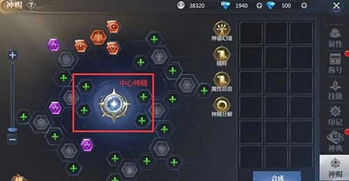 2、神赐装备:具体可分为外圈神赐与中心神赐,需注意的是,每一种神赐装备仅能够装配在与之相对应的神赐孔位之上。