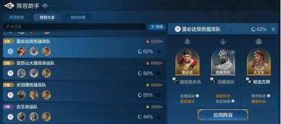 在搭配上,较多的选择是体系相对独立的坦克。例如大卫王,其自身技能所带来的坦度极高,泛用性也很强;还有织田信长,在削弱流效果叠加后,坦度表现不俗,与输出角色搭配也颇为适宜。