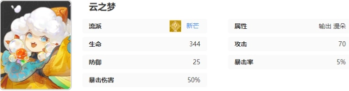 白云形态呈现为:通过云之梦召唤出【彩虹云朵】,使其跟随着角色头顶位置,以一定周期朝着附近距离最近的敌人释放【彩虹射线】,每次释放均造成56.0%的伤害。