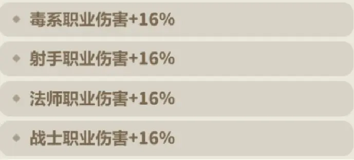 提供可观但受限的单职业增伤。对于队伍中的主要输出角色来说仍是值得保留的词条,但无法惠及全队。
