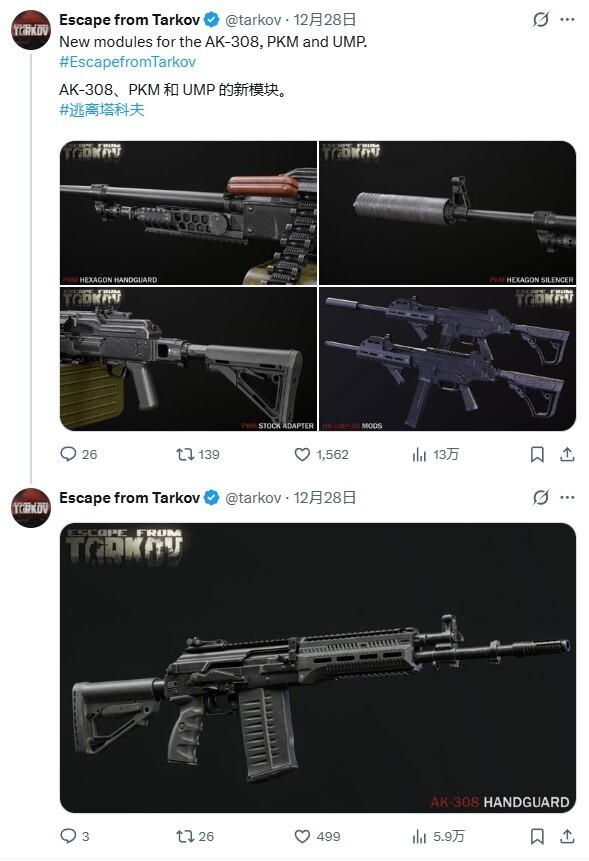 为现有的AK-308、PKM、UMP等武器配备新的改装模块。