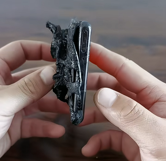 第二天有人捡到送回来时,手机已经烧得面目全非,成了战损版。