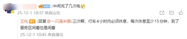在评论里,他也提到,这次行程总共充了3次电,智能驾驶的占比大概在50%上下。
