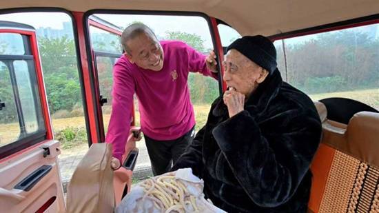 61岁的儿子每天用车子载着100岁的父亲出门晨练,他说:“实在舍不得把老父亲独自留在家中,这样的陪伴已经坚持三年多了。”