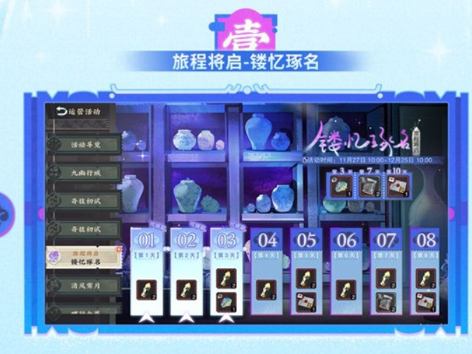 11月27日上午10点到12月25日上午10点期间,玩家登录游戏就能积累积分,用这些积分可以换取冬谷神秘水、超律制造申请、请调券、焕光珀片等各式各样的奖励。