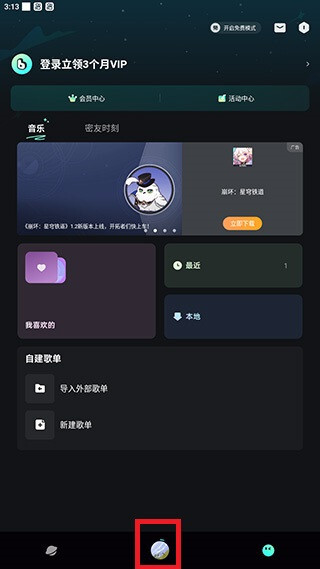 打开波点音乐的首页后,点击页面底部的【播放器】按钮。
