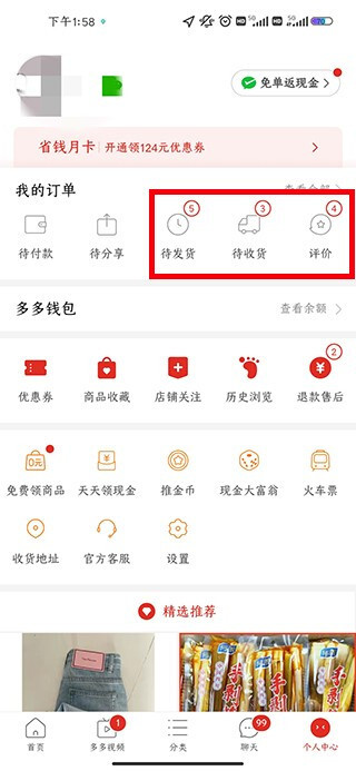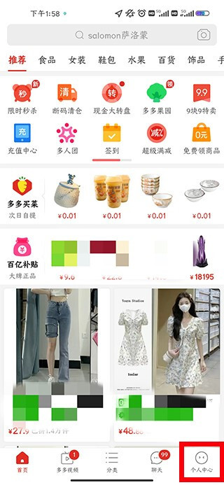 进入拼多多的主页面后,点击“我的”选项