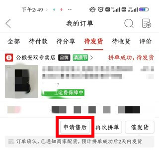 找到你要取消的订单,点击申请售后