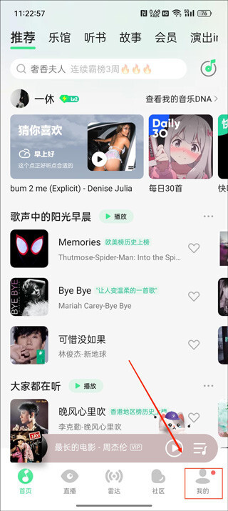 首先我们在QQ音乐的首页点击右下角的【我的】
