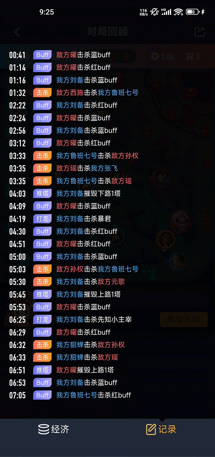 再把屏幕向下滑动到最底部,就能看到“对局回顾”按钮了。
