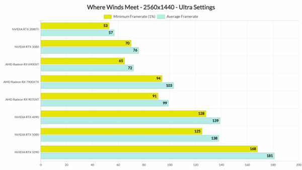 在性能表现方面,海外玩家测试后发现《燕云十六声》的运行效果相当出色:2K分辨率拉满最高画质时,游戏平均帧率可达138帧,1%LOW帧也能稳定在125帧。对于这类以剧情为核心的游戏而言,60帧以上的流畅度其实已经足够优秀——毕竟大量性能都投入到了画面渲染上;更值得一提的是,游戏还支持DLSS技术,若开启DLSS+帧生成功能,帧数甚至能直接翻倍。因此,使用NVIDIA显卡的玩家完全不必为游戏帧数问题过多担忧。