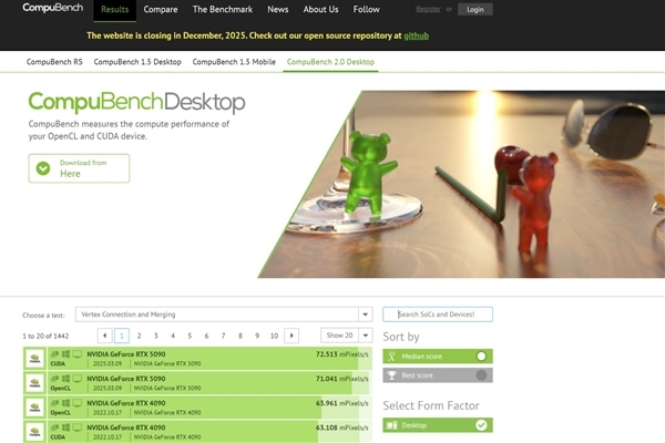 GFX Bench以游戏性能测试为核心方向,CompuBench则将重心放在3D模型渲染、视频剪辑处理以及AI图形识别等更偏向生产力场景与开发领域的性能基准评估上。