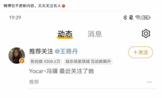 不过,最近冯骥的微博进入了“停更”状态,这一变动让部分网友感到好奇。有网友注意到,尽管没有发布新内容,冯骥的微博账号依旧处于正常使用状态,并且近期还关注了演员王珞丹。