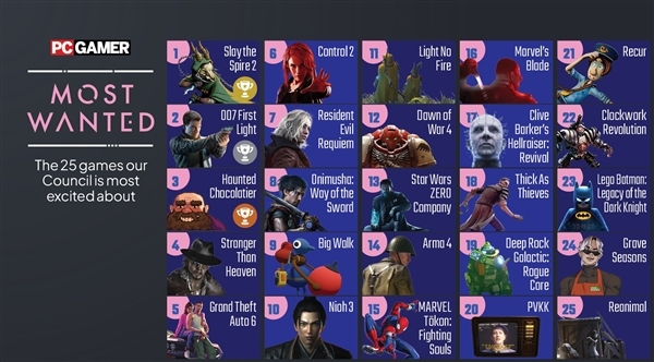 根据PC爹爹的口味,《杀戮尖塔2》排第一,《GTA 6》只排第五。