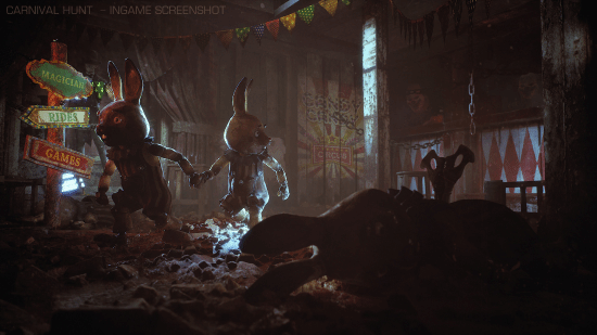 《Carnival Hunt》是一款非对称恐怖策略类多人游戏。游戏中,一名玩家将化身嘉年华怪兽,其余玩家则以兔子的身份参与其中,共同上演一场紧张刺激的对抗博弈。