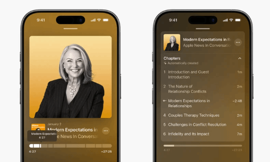 自动生成章节:通过AI识别音频内容,为无预设章节的播客单集自动切分章节,方便快速跳转;