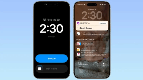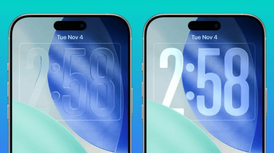 锁屏自定义菜单新添“液态玻璃”滑块,能对时钟区域的不透明度进行无级调节(从清晰过渡到磨砂质感),以此适配各类风格的壁纸,同时解决了之前因固定效果而引发的文字识别难题。
