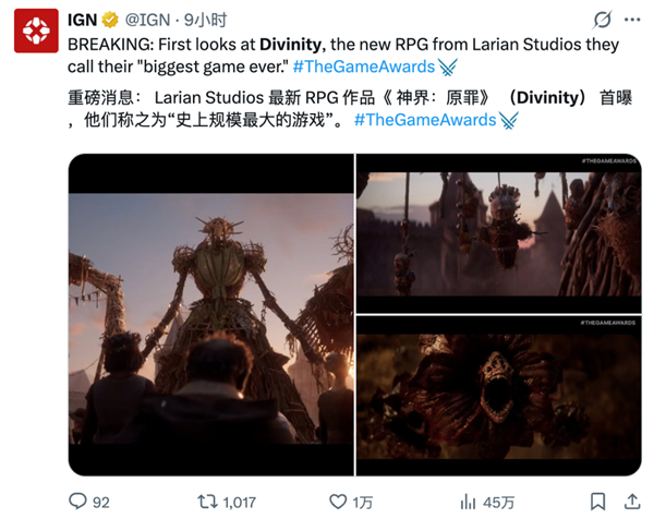 《博德之门 3》都做成年度游戏了,这个新游戏最后能成什么样,小发是真期待。