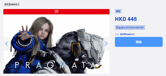 卡普空旗下科幻游戏《Pragmata/虚实万象》确认推出Switch2版本,目前该作已在eShop平台开放预购通道。其中,标准版定价448港元,豪华版为518港元,此外还有售价108港元的豪华升级包可供选择。