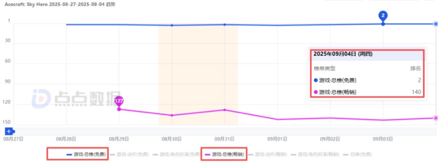 9月4日位于海外市场iOS端游戏畅销榜排名情况
