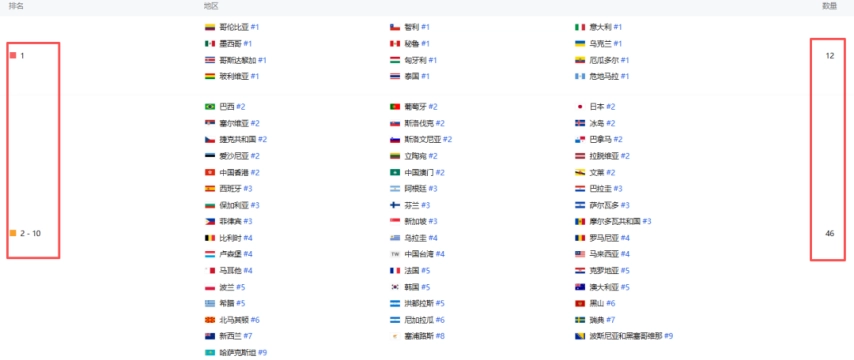 上线8日(9月4日),该作在全球iOS游戏免费榜的排名并没有大规模下滑,反而维持住了其强势表现,处于90个区域市场游戏免费榜TOP50,其中位于中国、美国以及**第2、韩国第5、中国**第4。