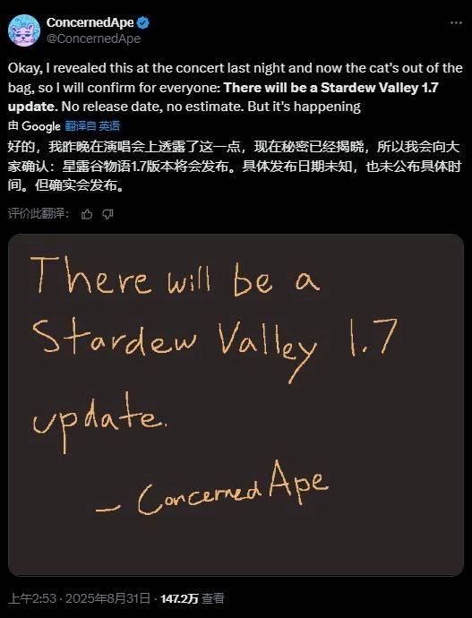 《星露谷物语》与《泰拉瑞亚》在上线后的数年间也陆续推出了多次大型更新,值得一提的是,《星露谷物语》的开发者ConcernedApe近期刚刚宣布正在开发游戏的1.7版本,目前具体的上线时间尚未公布,还请大家耐心等待后续消息!