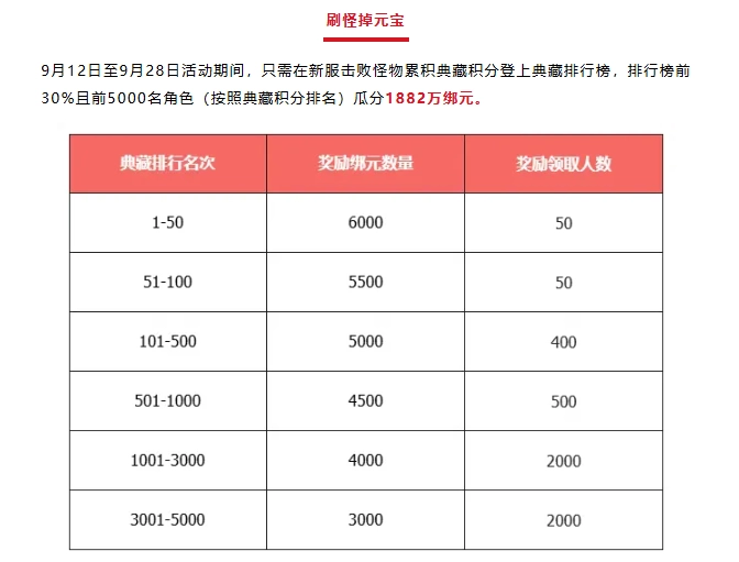 有刷怪掉落元宝的玩法,还能参与瓜分1882万绑元的大奖池;另外设有公会争霸赛,奖金池达340万元宝,会长可获得一半,剩余一半由所有有效成员平分,特别适合想和兄弟们一同从零起步、共创一番事业的公会。