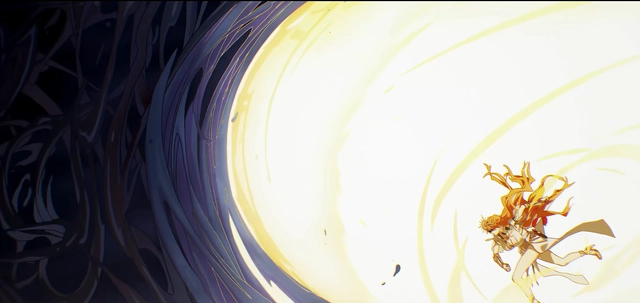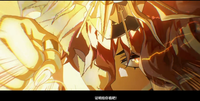 一无所有的奥古斯塔彻底失去了与鸣式对抗的力量,在即将自我湮灭之际,那些被赋予“生命”的角斗士英灵们,反而将自身的希望尽数托付于他。就在这一刻,奥古斯塔追上了命运的脚步,毫不含糊地——一拳将命运彻底打爆!尤诺眼中,奥古斯塔与英雄王重叠的身影,连同那自黑色浪潮中崛起、一拳打碎黑潮的奥古斯塔,终于真正成为了预言中所指的英雄王,将七丘之地的战斗推向了最炽热的高潮。
