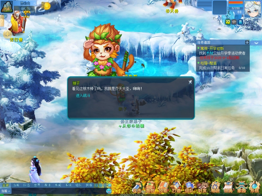 开学季的脚步近了,为了迎接大批学子,负责迎新事宜的使者正为相关事务犯愁,大家快去瞧瞧!活动进行时,清水湾、九龙坡、昆仑山这三张地图会随机出现不同的活动怪物。