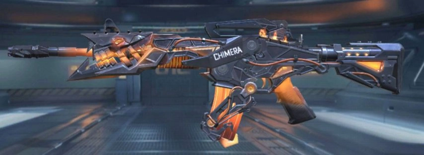 M4A1-末日审判以深邃的黑色为主,搭配亮橙色的能量线条和细节装饰,营造出一种科技感与毁灭气息的强烈对比。