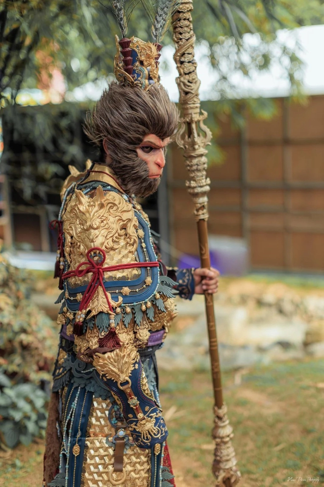他表示这件cos服是为了参与2025年兰卡动漫展而打造的,这是他到目前为止花费时间最多、制作工艺最为复杂的cosplay作品,凝聚了整整六个月的心血。而这次漫展也让他得以实现心愿——将《黑神话:悟空》里的大圣形象从虚幻的想象世界带到了现实之中。