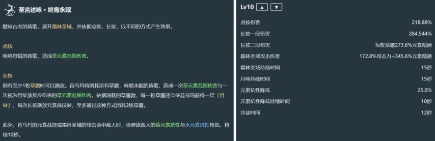 (3)战技或领域攻击命中,10秒内降低敌人25%草抗+水抗,最长覆盖时间25秒。