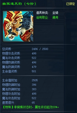 每一匹坐骑都具备独一无二的属性,哪怕是同类型的坐骑,彼此的属性也存在差异。给坐骑喂食不仅可以提高它的属性能力,当满足特定条件时还能让它完成进阶——届时不仅战斗力会得到极大提升,外形也会变得更加炫酷霸气!坐骑的等级越高,为主人带来的属性加成也就越丰厚。另外,所有坐骑都能明显加快角色的移动速度。