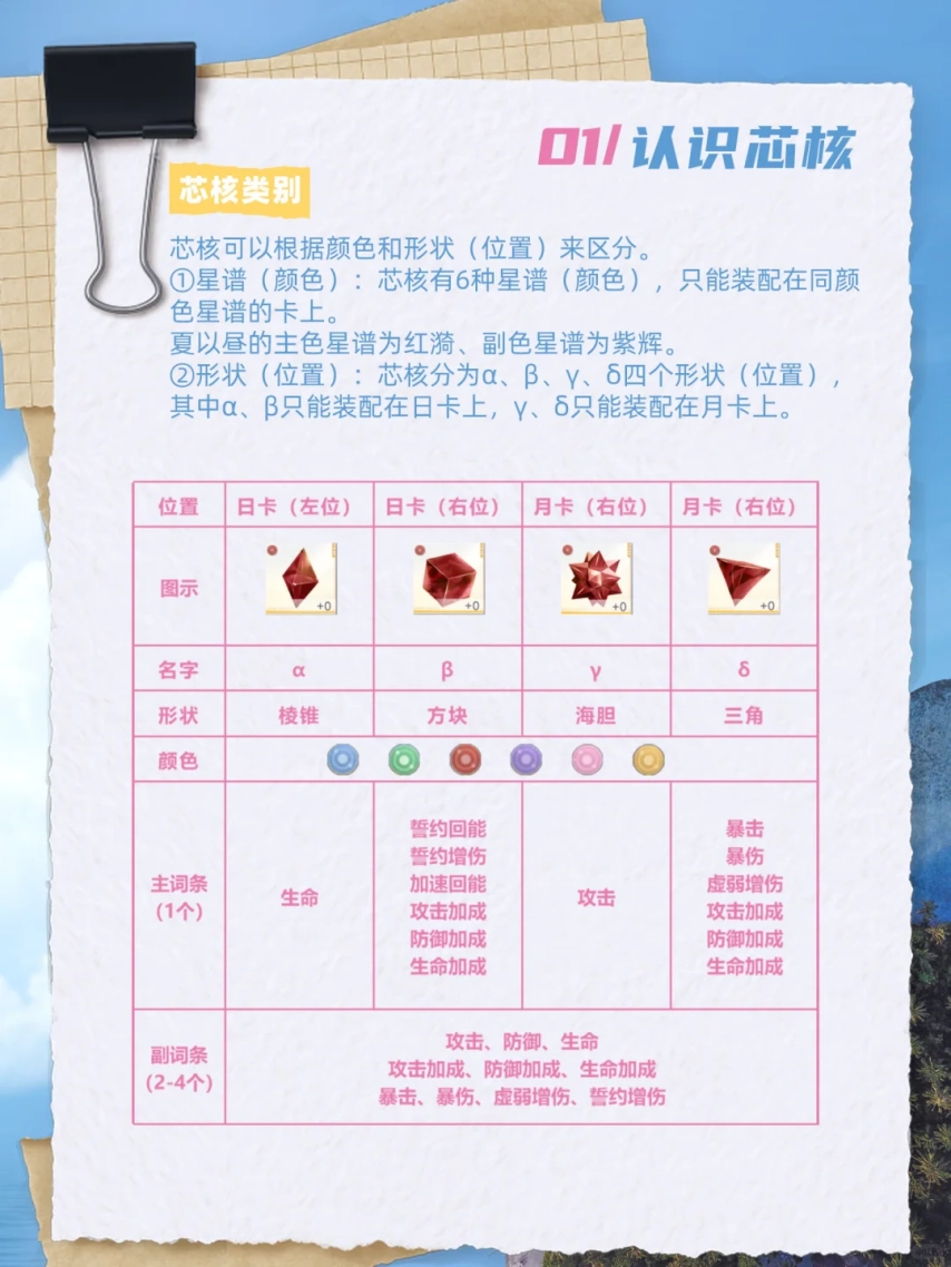 芯核各词条的含义