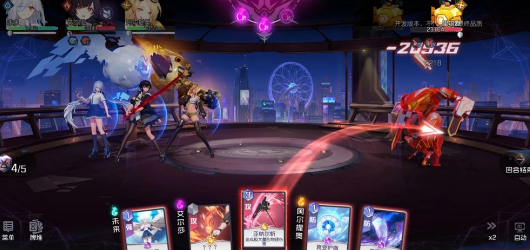 第一回合先把盾祭献掉,第二连击刚开始的时候没有cp,这两次连击需要达成湮没超能力的效果,同时还要给圣女和输出位加buff、凑出湮没卡,另外得借助洛维的救赎技能来抽取时间牌堆的牌。要是这两次连击的准备工作都没法完成,那就重新开启流程。