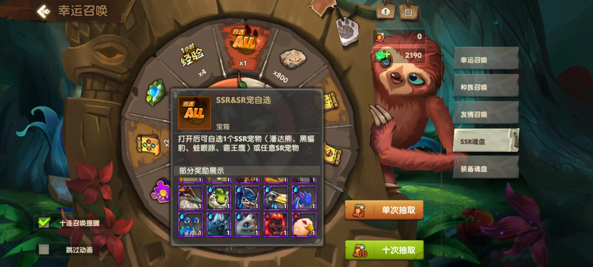 在幸运召唤玩法里,SSR魂盘抽取到自选券后,虽然也能选鹦鹉虎,但这样不太划算,相比之下选择SSR宠物会更合适一些。