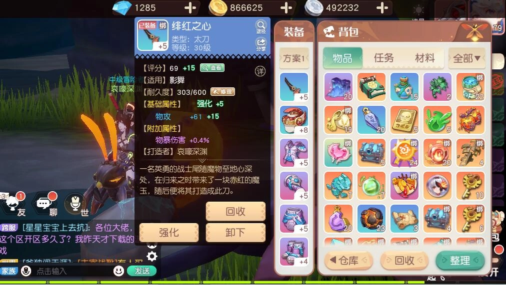 首先,点击角色背包,就能查看当前玩家角色佩戴的装备及其强化等级。选中想要强化的装备,即可直接进入装备强化界面。在这个界面里,玩家能够借助多种途径来提高装备的等级。