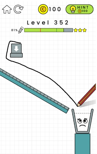 快乐玻璃杯354关需要画一个底座接住玻璃杯。