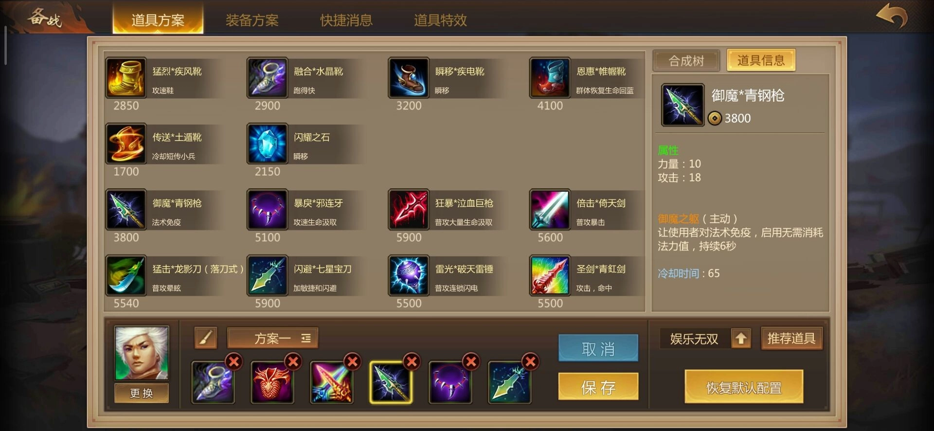在此之后,马超的发育通常会变得相对轻松,逐渐进入自身的强势发力阶段,因此这个时期可以考虑选择攻守兼备的青钢枪作为核心装备。这件装备既能有效提升马超的输出能力,又能让他在短时间内获得免疫所有法术伤害的效果,从而让马超在战斗中更加游刃有余。