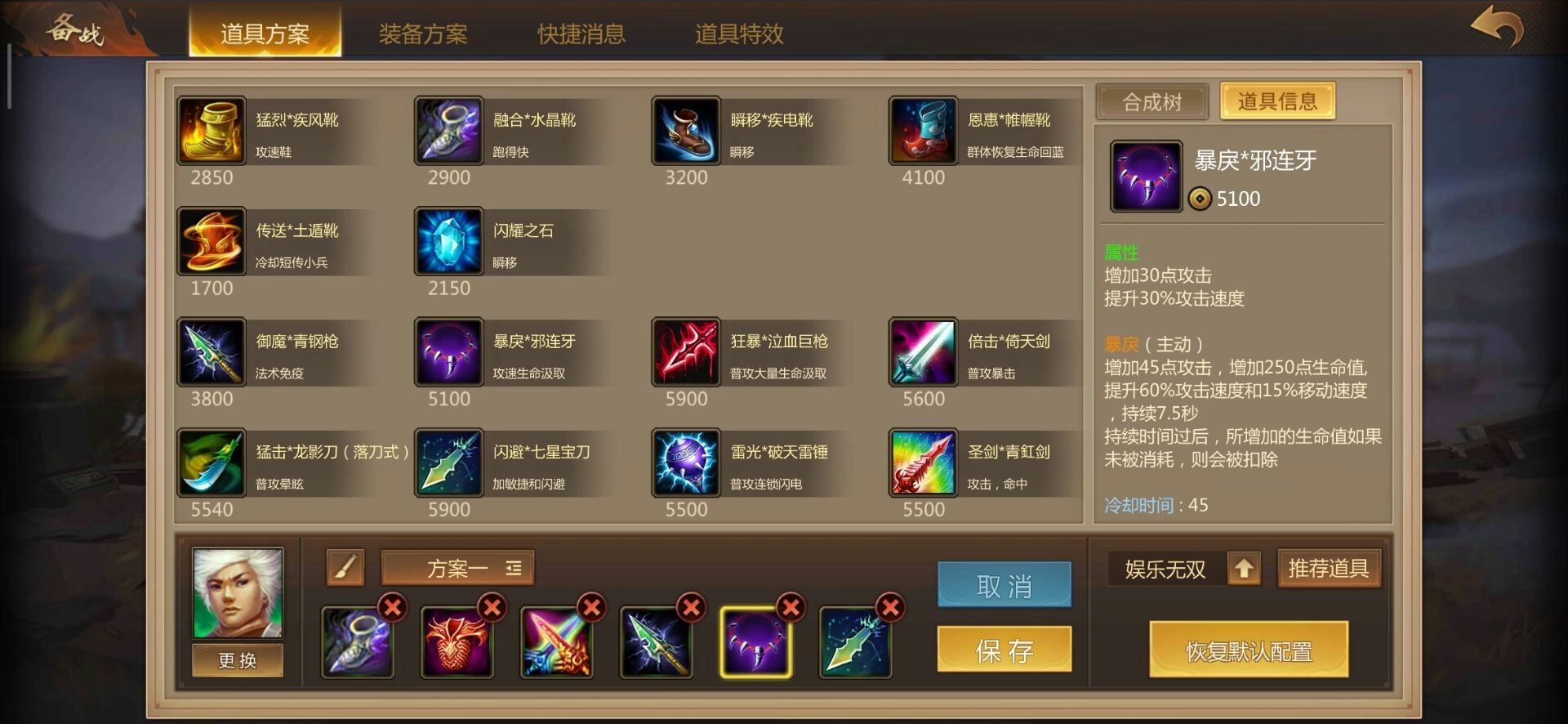 有了前四件装备的助力,马超的输出能力和抗性都得到了较好的保障,后续两件装备可以依据当前游戏的战局状况来进行针对性挑选。要是我方队伍具备显著优势,建议玩家选择“邪连牙”这件装备,它能提升更多的攻速与攻击力,并且通过主动效果还可获得短暂的爆发性输出加成。