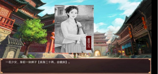若遇到少女卖身的情况,选择提供帮助后,有可能触发将她带回宫中的剧情(也可能是少女拿了银两回家,同时道德属性会增加),之后在随从府里也能找到她。