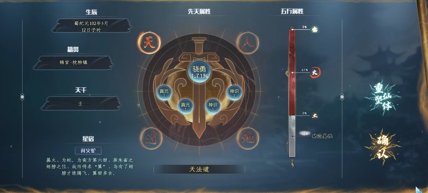 接下来是星宿的挑选环节,无论怎样都得选“朱雀”和“翼火蛇”,这二者是固定搭配,不会改变,天灵根和它们的关联十分紧密!