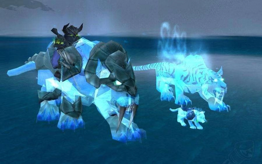 今年春节暴雪难得“放了回血”,幽灵虎以超大折扣开售,一千多块就能拿下——对比之前动辄上万的价格,简直是“良心价”了。直接去商城购买就能获得,但和其他坐骑不同的是,它不支持账号内所有角色共享,只能绑定一个角色使用。所以入手前得想清楚,不然钱就白花了。外观上确实霸气:半透明的身形裹着幽蓝色的火焰,像从地狱深处钻出来似的;和剑齿虎一样的长长尖牙,透着强悍的破坏力。