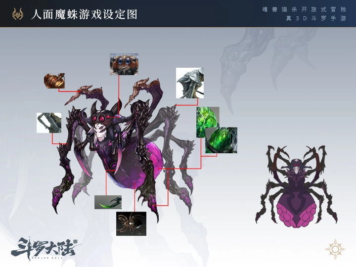 人面魔蛛是斗罗大陆里颇为有名的魂兽,外形如同一只硕大的蜘蛛,奇特之处在于它的躯体上衍生出了类似人脸的特征,性情机敏且聪慧。它的魂技效果是依靠闪避动作来恢复自身魂力,因此对适配的魂师有着较严格的要求,通常更适合本身闪避能力就出众的敏捷系魂师佩戴使用。