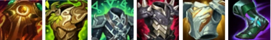日炎圣盾、振奋盔甲、荆棘之甲、法师之靴、狂徒铠甲与石像鬼板甲