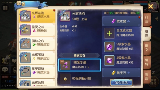 在镶嵌页面,你可以利用参与活动或完成任务所获取的材料,合成各式各样的水晶或钻石。