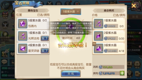 当合成水晶或钻石成功时,会消耗银币获得水晶或钻石。