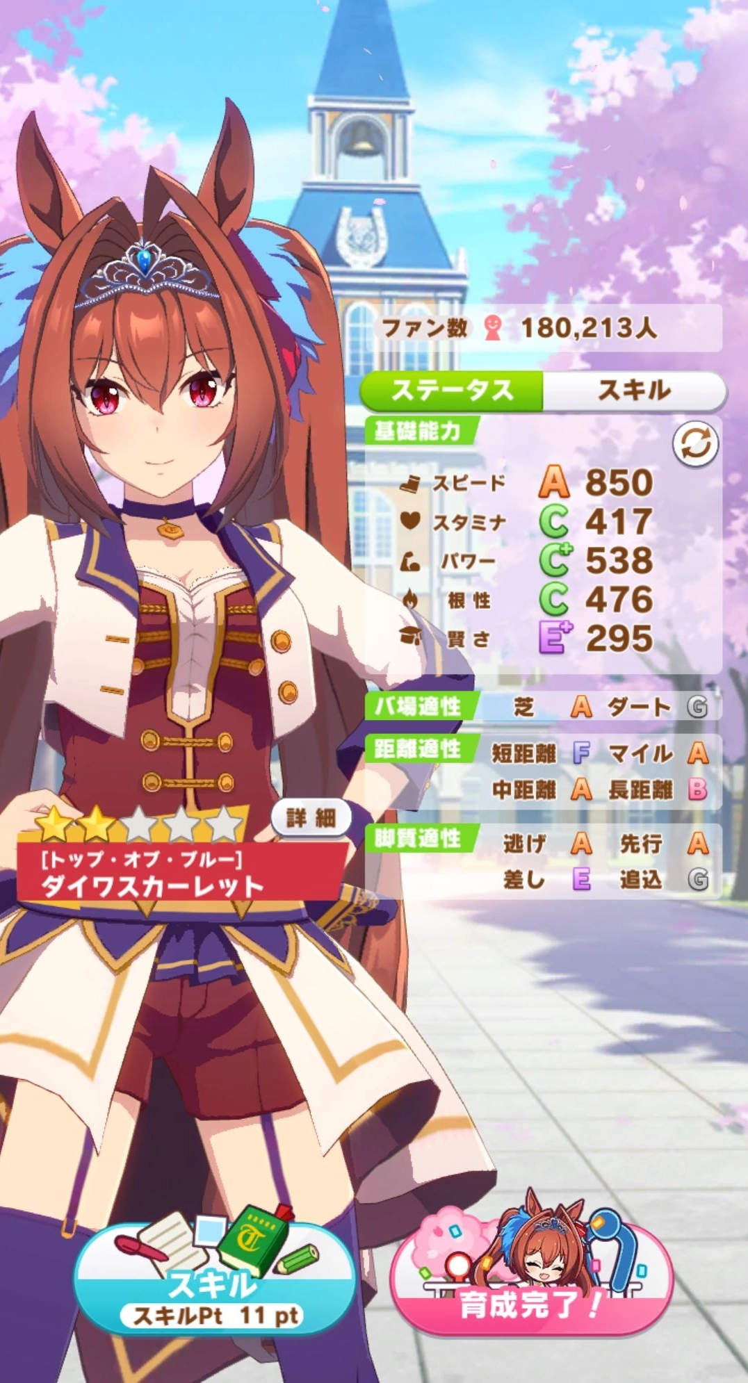 2、脚质的逃跑和先行是A。可以根据手头的卡和取得的技能选择脚质。但是因为状态分配有点变化,所以要尽早决定。