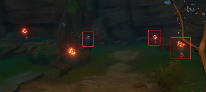 第六幅壁画在遗迹火把解谜墙的侧面,上面同样带有菱形图案,按照有阴影的图案顺序点亮火把,就能获得一个宝箱。